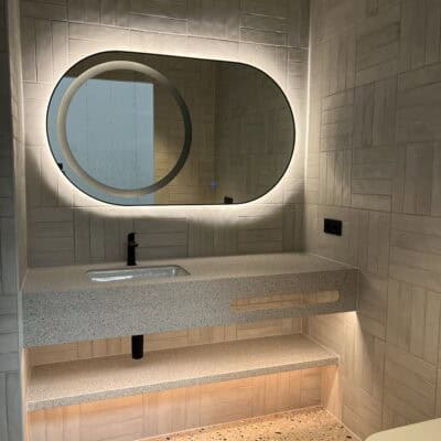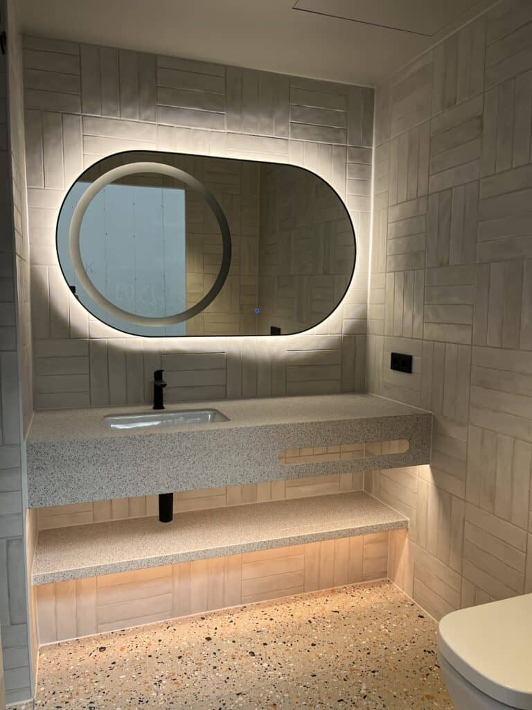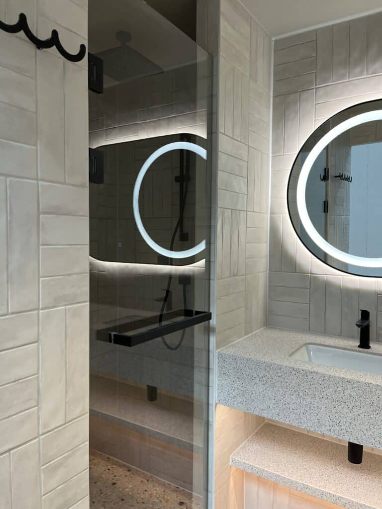 Badekabinene er nemlig «skreddersydd» etter dine ønsker, behov og spesifikasjoner – også med hensyn til bærekraft. Våre prefabrikkerte badekabiner overholder som standard alle krav til DGNB- og BREEAM-sertifisering, samt miljøkravene fra SINTEF.